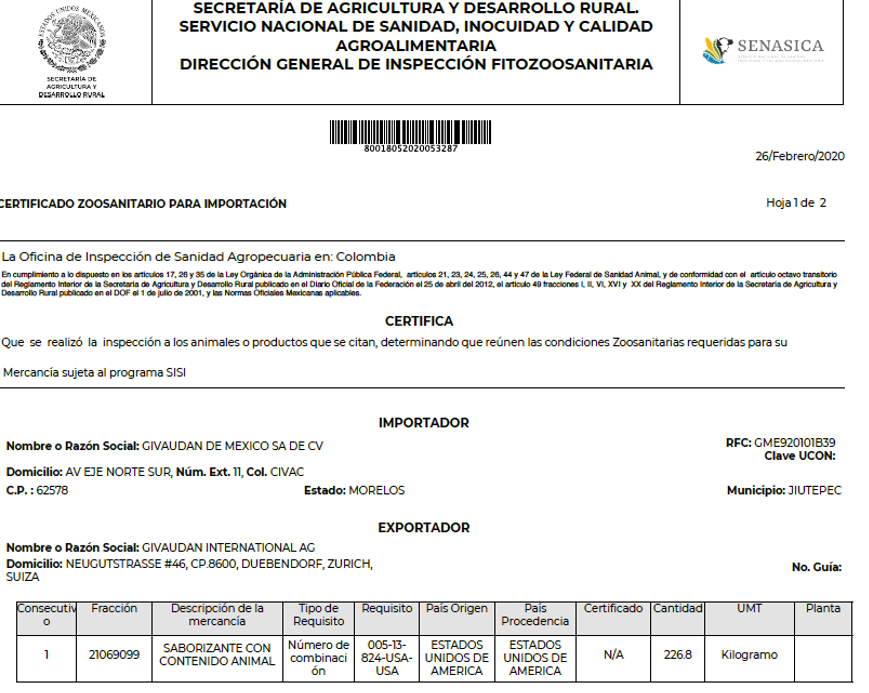 Los Certificados Zoosanitarios otorgados por el Servicio Nacional de Sanidad, Inocuidad y Calidad Agroalimentaria (SENASICA) son generalmente válidos por un plazo de 18 meses, considerando que el producto cumpla con todos los requisitos fitosanitarios y zoosanitarios establecidos para él.
